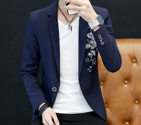 西服是結構相對規范的服裝品類,要體現伙伴們脾性偏好是比較難的。除了在扣子、兜、開衩等基本的變化外,還可以從里料選擇以及刺繡、印花、拼色等工藝變化。