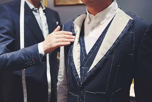 胸部較平的伙伴,可以用厚一些的胸絨、胸襯撐起西服;特別是溜肩的伙伴可以用稍厚一點的墊肩。但凡事都不可過度,特體也是如此。