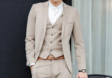 白色是一種百搭的顏色,搭上休閑的款式,把男士的不羈和高傲搭配得很恰當。卡其色的西裝如果搭配得不好就會很是騷氣,也是男士的忌諱。但是把它們搭配起來就會是完美的契合,還有一種獨特的魅力。
