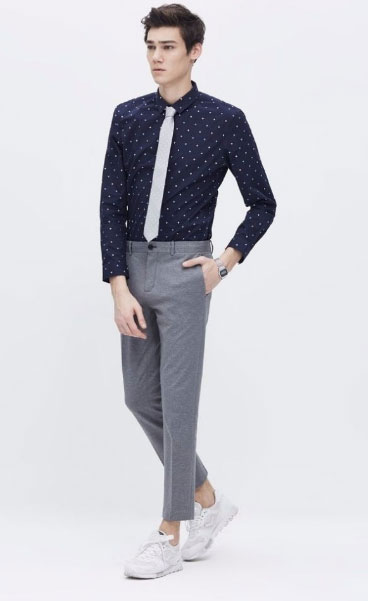 偏休閑襯衫+九分翻折休閑西褲,無論是年輕的小伙子,還是中年男士,都非常適合。