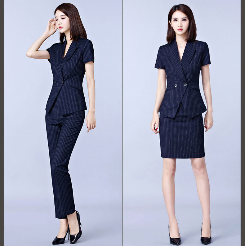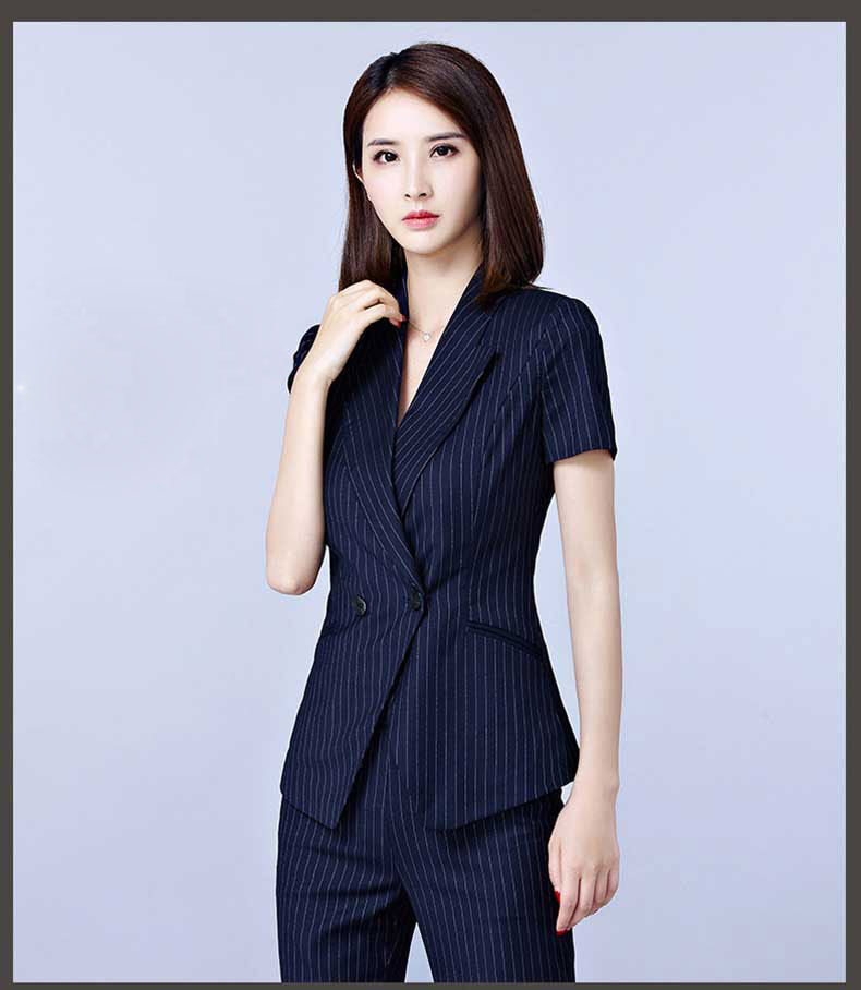 您的位置:主頁 > 西服定制 > 女士西服定制 > 藍色條紋半袖西裝定制