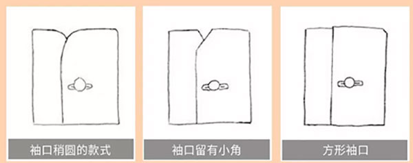 袖口留有小角:此款袖子邊緣成斜角設(shè)計。多為藝人或一些專家所喜好。