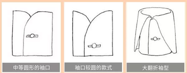 中等圓形的袖口:袖口的弧度比之前的稍圓的更大。給人以優(yōu)美的印象。